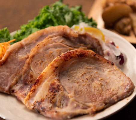「米の娘ぶた」は、山形県金山町の農場で当社がこだわりを持って育てるブランド豚です。国産の飼料用米とホエー(乳清)を配合した飼料を食べて育つ豚で、やわらかい肉質と、かむたびにうまみがあふれる、あっさりとした甘みのある脂身が特長です。