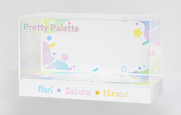 前面にロゴやフレームを、背面に風景やテクスチャを印刷することで、中の展示物を引き立て、アートやジオラマのような立体的な世界観を演出。アクリルならではの透明感を活かし、独創的なディスプレイを可能にします。