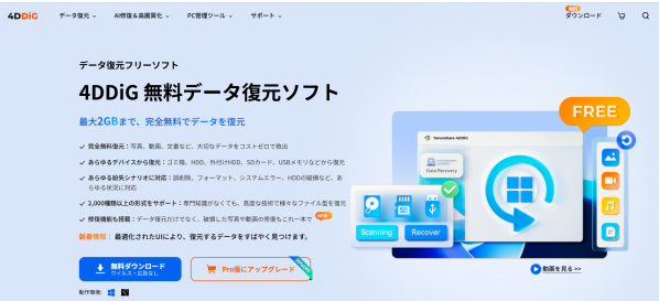 Tenorshare 4DDiGはデータ復旧の専門家です。WindowsとMacに対応しており、様々な状況で失われたデータを復元することができます。AI技術を使用して、失われた動画や破損した動画を復元可能です。
