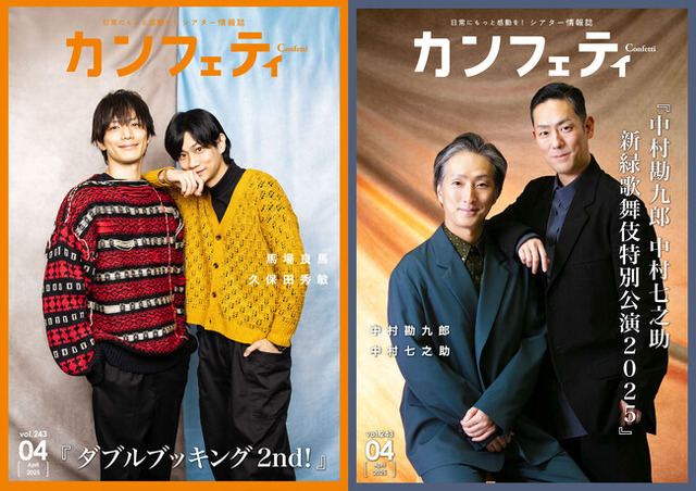 今月号の表紙には、『ダブルブッキング2nd!』より 馬場良馬 & 久保田秀敏、『中村勘九郎 中村七之助 新緑歌舞伎特別公演2025』より中村勘九郎 & 中村七之助が登場!