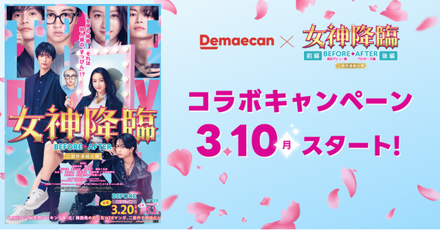 株式会社出前館は、運営する日本最大級のデリバリーサービス「出前館」において、2025年3月20日より前編が公開される映画『女神降臨』とのコラボキャンペーンを、本日から3月23日(日)まで開催いたします。