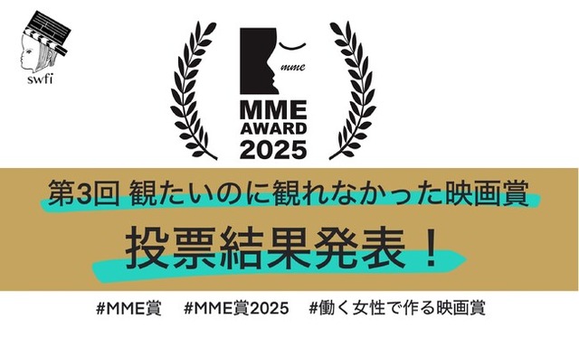 子供を育てながら働ける映像業界を目指し、業界全体の労働環境の改善に取り組む特定非営利活動法人映画業界で働く女性を守る会(https://swfi-jp.org/)通称 swfi (スウフィ)では、すべての働く女性(性自認が女性)が当事者となって作りあげる映画賞、第3回「観たいのに観れなかった映画賞~いやぁ、時間がなくて~」(略称「MME賞」) を開催し、367名の方からの投票を頂きました。(うち無効票8票)