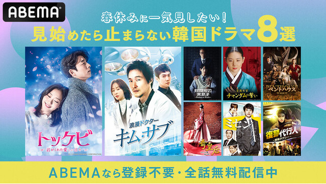 新しい未来のテレビ「ABEMA(アベマ)」では、学園ドラマやラブコメディ、サスペンスや時代劇など幅広いジャンルの韓流ドラマ作品をはじめ、いま注目のK-POP番組や話題のオーディション番組を500作品以上配信しております。このたび、「ABEMA」では春休みの時期に一気見したい、韓国の人気ドラマ作品を8作品ご紹介いたします。