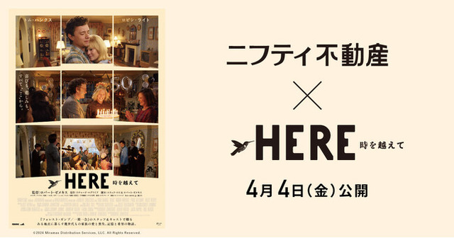 このたび、4月4日(金)公開の映画「HERE 時を越えて」(配給:株式会社キノフィルムズ)とのコラボレーションを実施し、「ニフティ不動産」サイト内で特集コンテンツ「理想のHERE=家とは?」を配信します。