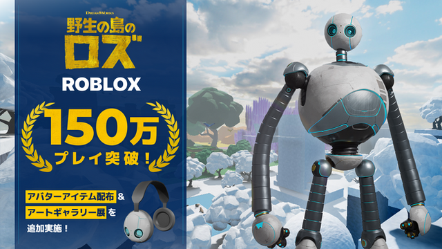 本作の2025年2月7日の日本劇場公開に合わせ、ambrが開発を手掛けたRobloxゲーム『野生の島のロズ:ロズの動物探しアドベンチャー』が、公開からわずか2か月で累計150万プレイを突破しました。さらに、同時接続者数は最大1,100人超えを記録。月間アクティブユーザー数3.8億人を超える世界最大のメタバースプラットフォーム「Roblox」において、多くの若いユーザーに親しまれています。この度、この大きな反響を記念し、ゲーム内に限定アバターアイテムの配布およびアートギャラリーエリアの新設を実施しました。