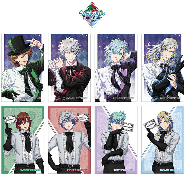全国アニメイト・アニメイト通販で5月24日~6月29日まで開催する「『劇場版 うたの☆プリンスさまっ♪ TABOO NIGHT XXXX』公開記念フェア」では、『うたの☆プリンスさまっ♪』関連の書籍・グッズ・グラッテコラボ商品をご購入1,100円(税込)毎、またはCD・Blu-ray・DVD・ゲームをご購入1点毎に、特典「イラストカード(全8種)」を1枚プレゼントいたします。特典には、白と黒の怪盗のような衣装に身を包んだ、QUARTET NIGHTの4人の美麗ビジュアルが使用されています。