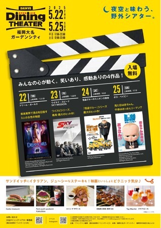 5月22日(木)~25日(日)の4日間、福岡大名ガーデンシティ・パーク(福岡市中央区大名2-6-50)にて「大名ダイニング・シアター」を開催します!