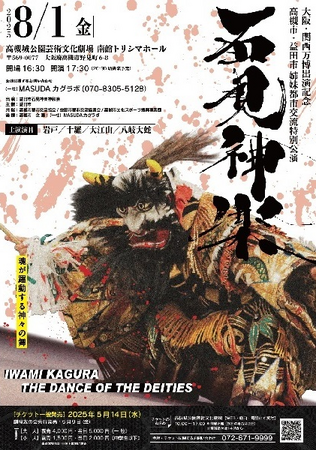 令和7年8月1日(金曜日)に高槻城公園芸術文化劇場で、日本遺産にも登録されている、島根県西部の石見地方に伝わる伝統芸能「石見神楽」が公演されます。きらびやかな衣装を身にまとって勇壮な立ち回り、迫力ある激しい舞など日本を代表する歌舞を、ぜひご覧ください。
