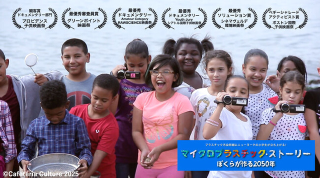 ブルックリンのレッドフック地区にあるPS15の小学校5年生は、自分たちでリサーチやデータ収集を重ね、それを市議会で公表し、自分たちの住む地域で使い捨てプラスチックを減らす活動を重ねていきます。そしてプラスチックはごみになってからだけでなく、生産の過程でも地球環境を汚染していること、そしてそれが気候変動に関わっていることを発見しました。さらに自分たちの学校のカフェテリアでアクションを起こし、それをニューヨーク市全体に広げていきます。映画では子どもたちの素朴な疑問に専門家が答えていき、アニメーションをふんだんに使って、このプラスチック汚染問題をわかりやすく解き明かしていきます。子どもたちのまっすぐな熱意から希望が滲み出るマイクロプラスチック・ストーリーは、世界45の映画祭に選ばれ8つの賞を受賞しています。