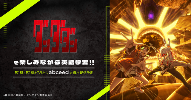 株式会社Globee(所在地:東京都港区、代表取締役社長:幾嶋 研三郎、以下 Globee)が提供するAI英語学習アプリ「abceed(エービーシード)」は、株式会社 毎日放送 (所在地:大阪市北区茶屋町、代表取締役社長 虫明 洋一、以下 毎日放送)で7月より第2期を放送予定の話題のアニメ『ダンダダン』第1期の英語吹き替え版を、2025年7月1(火)日より配信開始することをお知らせいたします。第1期は同日より一挙配信、シーズン2は7月3日(木)から毎週1話ずつ順次公開予定です。