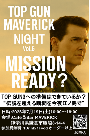 トム・クルーズの誕生日月、そしてアカデミー賞名誉賞の受賞決定という話題に沸く中、映画『トップガン3』の脚本がすでに完成していることが報じられ、世界中のファンの期待が加速中。その熱狂を受けて、湘南・江ノ島で「TOP GUN MAVERICK NIGHT Vol.6」が開催される。今回は、名シーンのアフレコ体験に加え、ファン自身が“次回作『トップガン3』の脚本を構想・発表”するセッションも実施。希望者全員にオリジナルドッグタグをプレゼント。