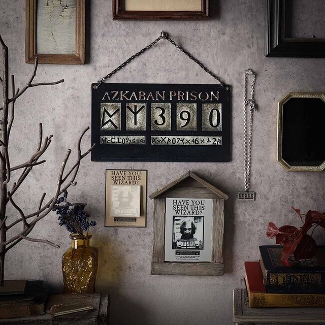 手配書でシリウス・ブラックが持っているマグショットボードをモチーフにしたサインボードです。取り外し可能なキーチェーン付きで、壁に飾ったり、立てかけたりすることができます。ハリー・ポッターの世界観を身近に感じられるアイテムで、置くだけでお部屋のアクセントになります。