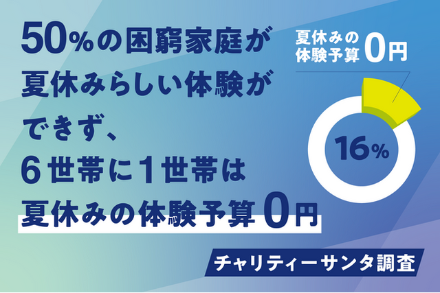 私たちの調査で「約6世帯に1世帯が、夏休みの体験に1円も使えない」という衝撃的な事実が明らかになりました。物価高騰を背景に、夏休みの「体験格差」が子どもたちを孤立させています。友達との会話のため、本当は体験していない思い出を話してしまう子もいます。