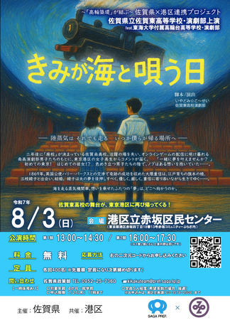 このたび、新たに書き下ろしたオリジナル脚本を用意し、佐賀県立佐賀東高等学校演劇部が再び東京都港区で、下記のとおり東海大学付属高輪台高等学校演劇部と高輪築堤を題材にしたコラボ演劇公演を上演します。