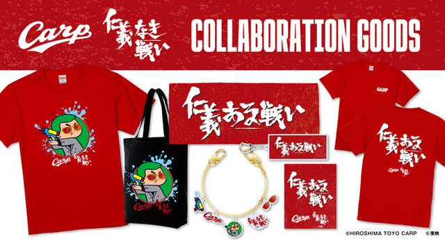 様々な欲望や裏切りが渦巻くヤクザ世界の中で己の“仁義”を貫き続けた孤高の主人公・広能昌三と、相手への敬意・チームの団結を忘れず信念をもって戦い抜くカープの姿を重ねたキーワード「仁義ある戦い」をコンセプトに唯一無二の商品を展開します。