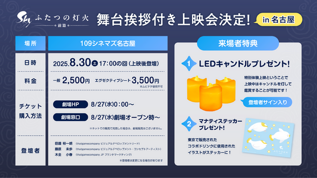 ■8月30日(土)『Sky 感謝のつどい in 109シネマズ名古屋 舞台挨拶付き特別体験上映会』