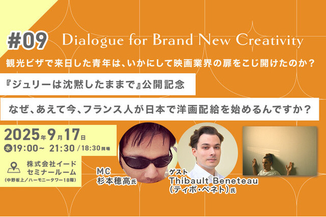 この問いの答えを探るべく、フランス出身でありながら、日本映画への愛を胸に来日し、言語の壁や未経験という逆境を乗り越え、ついに自ら配給事業を始動させたティボ・ベネト氏をお招きします。氏が第1回配給作品として買い付けた『ジュリーは沈黙したまま』の裏側から、日本で働くことのリアル、そしてインディペンデント映画の未来まで。そのドラマチックな道のりと、その先に見据える未来図から、これからの映画ビジネスのヒントを考えます。