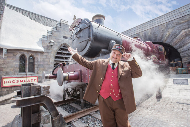 また、エリアのエントランスアーチをくぐると悠然とした姿で蒸気を吐くホグワーツ(TM)特急が待っており、その前では、にこやかな車掌(コンダクター)が、『バック・トゥ・ホグワーツ』限定の特別な挨拶で魔法学校の生徒たちを出迎えました。9月1日は、作品の世界で、生徒たちが新学期に向けてホグワーツ特急に乗って学校に戻ることから、ファンたちにとってホグワーツ特急は『バック・トゥ・ホグワーツ』の象徴的な存在とされています。今まさに魔法界に到着したばかりの蒸気があがった特急の前で、車掌がファンに向けて特別な挨拶すると、ファンの皆さまは超興奮!挨拶に応えたり一緒に写真を撮ったりと、陽気な車掌との交流を楽しみながら物語の世界を全身で体感しました。この特別な挨拶は、本日から2025年9月30日(火)まで体験できます。