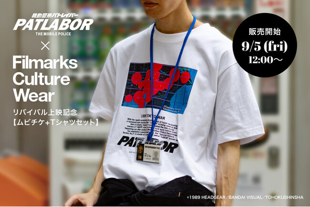 公開を記念して、Filmarks Culture Wearと『機動警察パトレイバー 劇場版』とのコラボレーションTシャツの発売が決定しました。第一弾告知として、両作品のムビチケカード2種とFilmarks Culture Wearによる劇場公開記念コラボTシャツをセットにした特別パッケージを、数量限定で販売。
