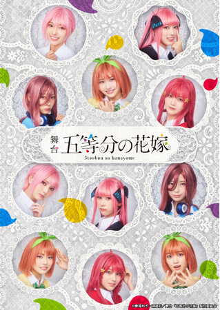 『五等分の花嫁』は、春場ねぎによる大人気漫画。貧乏な生活を送る男子高校生が、同級生の五つ子たちの家庭教師として奮闘する青春ラブコメディ。舞台初挑戦となる日向坂46の四期生11人がダブルキャスト、トリプルキャストでヒロインの五つ子を演じる。面倒見の良いお姉さんタイプだが、家では面倒くさがりな長女の一花役を小西夏菜実、竹内希来里。料理が得意で家の炊事を担当している次女の二乃役を石塚瑶季、清水理央。口数が少なく落ち着いているが、戦国武将が好きという一面を持つ三女の三玖役を宮地すみれ、渡辺莉奈。元気いっぱいで人なつっこく、スポーツが得意な四女の四葉役を正源司陽子、平尾帆夏、藤嶌果歩。姉妹の中で一番の頑張り屋であり、一番の食いしん坊、五女の五月役を平岡海月、山下葉留花がそれぞれ担当。明るく元気なキャラクターからクールなキャラクターまで、日向坂46が紡ぐかわいさ500%の五つ子たちにぜひ注目していただきたい。