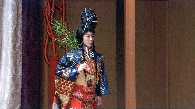 宮廷絵師・金岡を萬斎が勤める『金岡 大納言(かなおか だいなごん)』は江戸前狂言屈指の大曲。宮中で一目惚れした上臈への狂おしい程の恋慕を、金岡が特殊なビブラート(ユリ)を含む謡と舞で抒情的に表現する前半から一転、後半では妻と現実に向き合います。今回は「大納言」の小書(特殊演出)により、一段と宮廷画家らしい装束での上演となります。ご期待ください!