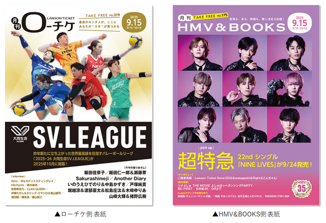 『月刊ローチケ』の表紙は、日本が世界に誇るバレーボールの集大成である「大同生命SV.LEAGUE」、そして『月刊HMV&BOOKS』の表紙には、9人組メインダンサー&バックボーカルグループ「超特急」が登場!