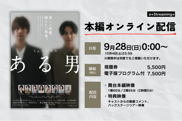 ミュージカル『ある男』舞台本編映像が9月28日(日)よりe+Streaming+にて配信決定。配信最終日・10月4日(土)まで何度でも視聴可能。視聴券は9月18日(木)12:00より販売開始!