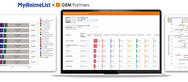 世界最大級のアニメ・マンガのコミュニティを運営する株式会社MyAnimeList(通称:MAL[マル]、所在地:東京都渋谷区、代表取締役:溝口敦)と、エンタテイメント業界に向けたデータ×デジタルマーケティングサービスを提供するGEM Partners株式会社(ジェムパートナーズ、所在地:東京都港区、代表取締役:梅津文)は 9月19日(金)、両社にて共同開発した「MAL dashboard powered by GEM」をリリースしましたのでお知らせします。
