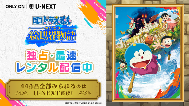 USEN&U-NEXT GROUPの株式会社U-NEXT(本社:東京都品川区、代表取締役社長:堤 天心)が運営する動画配信サービス「U-NEXT」は、『映画ドラえもん のび太の絵世界物語』を本日より独占・最速レンタル配信いたします。