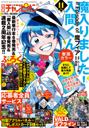 株式会社秋田書店(所在地:東京都文京区、代表取締役社長:山口徳二)は、発行している漫画誌「別冊少年チャンピオン」(編集長:小口太郎)10月10日(金)発売の11月号にて、表紙&巻頭カラーに『魔入りました!入間くん if Episode of 魔フィア』(漫画:hiro者 原案:西修)を掲載。付録では、『魔入りました!入間くん if Episode of 魔フィア』輝く6巻描き下ろし着せ替えカバーが、登場することをお知らせいたします。