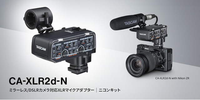 TASCAM(タスカム)は、株式会社ニコンとの協業によりミラーレスカメラ対応XLRマイクアダプター『CA-XLR2d』シリーズの追加モデルとして、9月10日に株式会社ニコンより発表された「ニコン ZR」と、デジタルアクセサリーシュー経由でのデジタル音声伝送に対応するニコンキット『CA-XLR2d-N』を2025年10月24日に発売いたします。