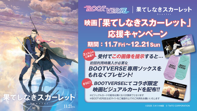 株式会社タイトー(本社:東京都新宿区、以下タイトー)が運営する“まるごとパーティースポーツ!”「BOOTVERSE」は、映画『果てしなきスカーレット』の公開を記念したコラボキャンペーンを2025年11月7日(金)より、開催いたします。