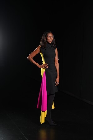 2025年11月5日、ミシェル・オバマ元アメリカ大統領夫人が、ニューヨークで開催された自身の著書《THE LOOK(原題)》のローンチを祝うトークイベントにてロエベを着用しました。