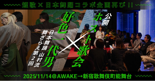 新宿を中心に事業を展開するSmappa!Group(スマッパ!グループ)は、2025年11月14日(金)に通常はクローズドで行われている「ホスト歌会」を「『好色一代男』日本舞踊 山村流 舞ざらえ 第2回」を記念し、一般公開いたします。会場は、新宿・歌舞伎町のホストクラブAWAKE。「『好色一代男』日本舞踊 山村流 舞ざらえ 第2回」を記念した連動企画として公演チケットをお持ちの方はどなたでもご覧いただけます。