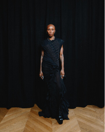 11月8日、パリのパレ・ガルニエにて開催された『ウィキッド』スクリーニングでは、2026年春夏コレクションより、フロッギング刺繍を施したブラックのコットンジャージーツイストタンク、シルクハボタイとオーガンザラッフルをあしらったシルクジョーゼット スパイラルカットスカートを着用しました。