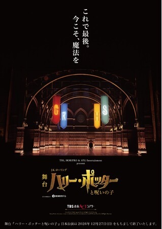 TBS赤坂ACTシアターにて絶賛上演中の舞台『ハリー・ポッターと呪いの子』。この度、日本公演は、2026年12月27日(日)をもって千秋楽を迎え、4年半のロングラン公演に幕を下ろすことが決定いたしました。2026年2月~4月公演チケットは一般販売中。2026年5月公演以降の詳細情報は来春発表予定です。