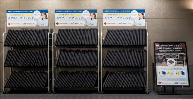 株式会社エアウィーヴ(東京都千代田区、代表取締役会長兼社長:高岡本州、以下「エアウィーヴ」)は、TOHOシネマズ株式会社(東京都千代田区)と協力し、TOHOシネマズ日本橋(東京都中央区)に貸し出し用の特別仕様のクッションを導入しました。