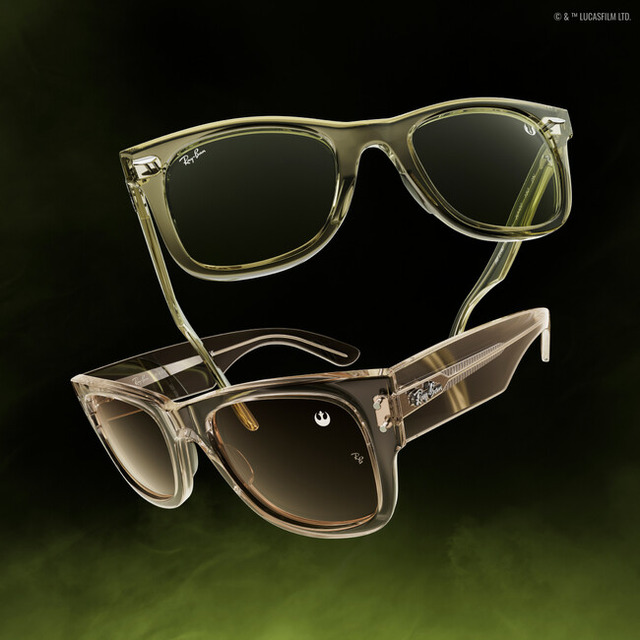 4種類のスペシャルエディションのサングラスが、伝説的なスター・ウォーズのキャラクターとレイバンのアイコニックなシルエットを通じて、時代を超えた物語を表現します。不朽の名作「ウェイファーラー(Wayfarer)」と「バロラマ(Balorama)」はヨーダとダース・ベイダーから着想を得ており、新たなメガアイコン「メガウェイファーラー(Mega Wayfarer)」と「メガバロラマ(Mega Balorama)」は、反乱同盟軍の反骨精神とカイロ・レンの暗黒の力を体現しています。