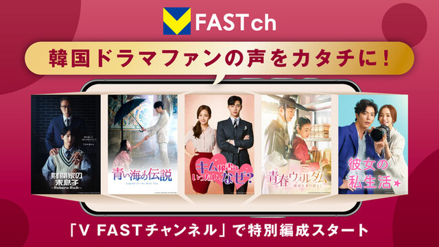 本調査結果を基に、BBMとCCCMKホールディングスが協同で展開する、視聴時間に応じてVポイントが貯まる無料動画配信サービス「V FASTチャンネル」(http://vfastch.tsite.jp)内の『韓流チャンネル』では、2025年12月22日(月)から2026年1月11日(日)の年末年始にかけて、韓国ドラマファンの声から番組編成を行った特別放送を実施します。V会員のリアルな声を番組編成に活かす取り組みは、V FASTチャンネルとして初となります。