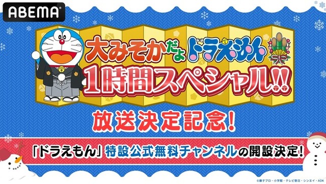 新しい未来のテレビ「ABEMA」は、“大みそかだよ!ドラえもん1時間スペシャル”の放送を記念し、2025年12月29日(月)より「ドラえもん」特設公式無料チャンネルを期間限定で開設いたします。