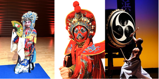中国雑技と京劇、日本の和太鼓が組み合わさった、ここでしか見られない公演になっている。
