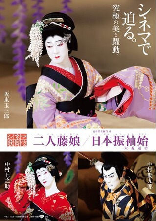 坂東玉三郎、中村七之助ら豪華キャストが出演する『二人藤娘/日本振袖始』を上映。シネマ歌舞伎ならではの舞台裏映像や、迫力のクローズアップ映像は必見です。