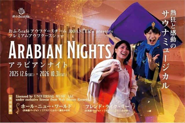 株式会社温泉道場(埼玉県比企郡ときがわ町、代表取締役 山崎寿樹)が運営するが運営する温浴ブランド「おふろcafe(R)」のアウフグースチーム「ROASTER‘s(ロースターズ)」は、サウナミュージカル『アラビアンナイト』を現在公演中です。今回新たに、情熱を注いだ開発秘話と、全国ツアー含む2月以降の上演日程を公開します。