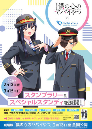 小田急電鉄株式会社(本社:東京都新宿区 社長:鈴木 滋)は、2026年2月13日(金)から3月15日(日)まで、劇場版「僕の心のヤバイやつ」に「下北沢駅」が登場することから、公開を記念したコラボレーション企画として、小田急線各駅にてスタンプラリーを開催します。また、キャラクタースタンディの設置のほか、下北沢駅では主人公の市川京太郎・ヒロインの山田杏奈によるオリジナル駅構内放送を行います。