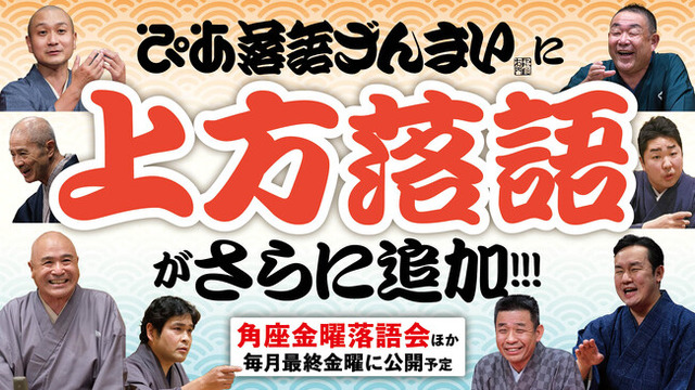 ぴあ株式会社がお届けする、落語の高座映像が定額見放題で楽しめる動画配信サービス「ぴあ落語ざんまい」では、毎月最終金曜日に「角座金曜落語会 -#カドきんらくご-」から厳選の新着高座映像を配信しています。
