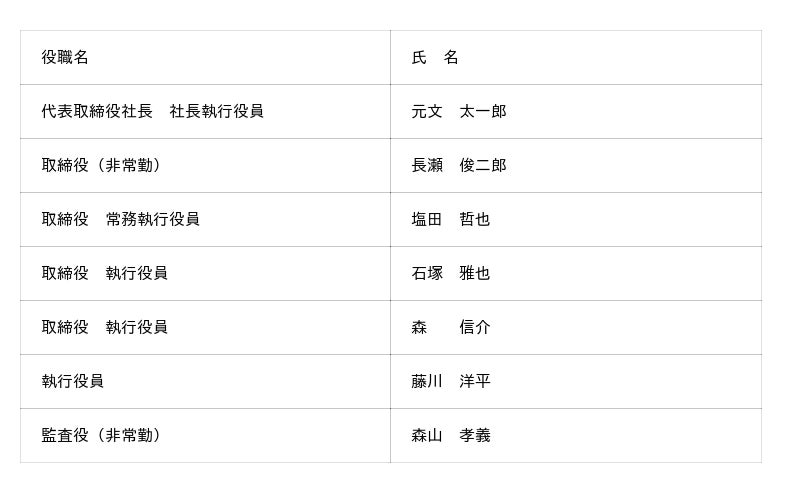 なお、上記異動に伴い、2026年4月1日付当社および主要グループ会社役員体制は下記のとおりとなります。