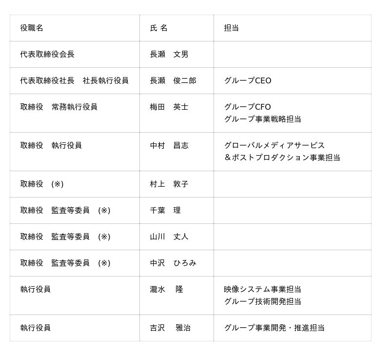 株式会社IMAGICA GROUP(本社:東京都港区、代表取締役社長 社長執行役員 グループCEO:長瀬俊二郎)は、2026年4月1日付の当社および主要グループ会社役員人事について、下記のとおり決定いたしましたので、お知らせいたします。