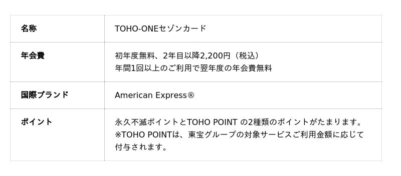 ■ TOHO-ONEセゾンカードの特徴