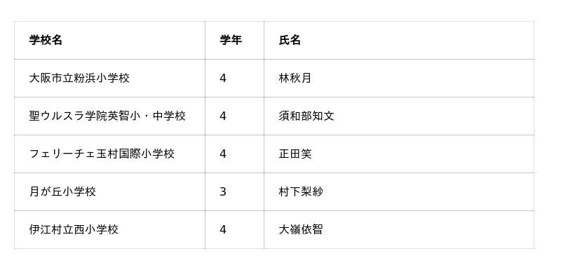 高学年の部:林 里瑳子さん(兵庫県 仁川学院小学校5年)