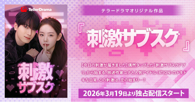 株式会社テラーノベル(本社:東京都港区、代表取締役社長:蜂谷宣人)は、ショートドラマプラットフォーム「テラードラマ」( https://teller.jp/short-drama/ )において、初となる韓国語完全オリジナル作品『刺激サブスク』をローンチし、2026年3月19日より独占配信を開始します。
